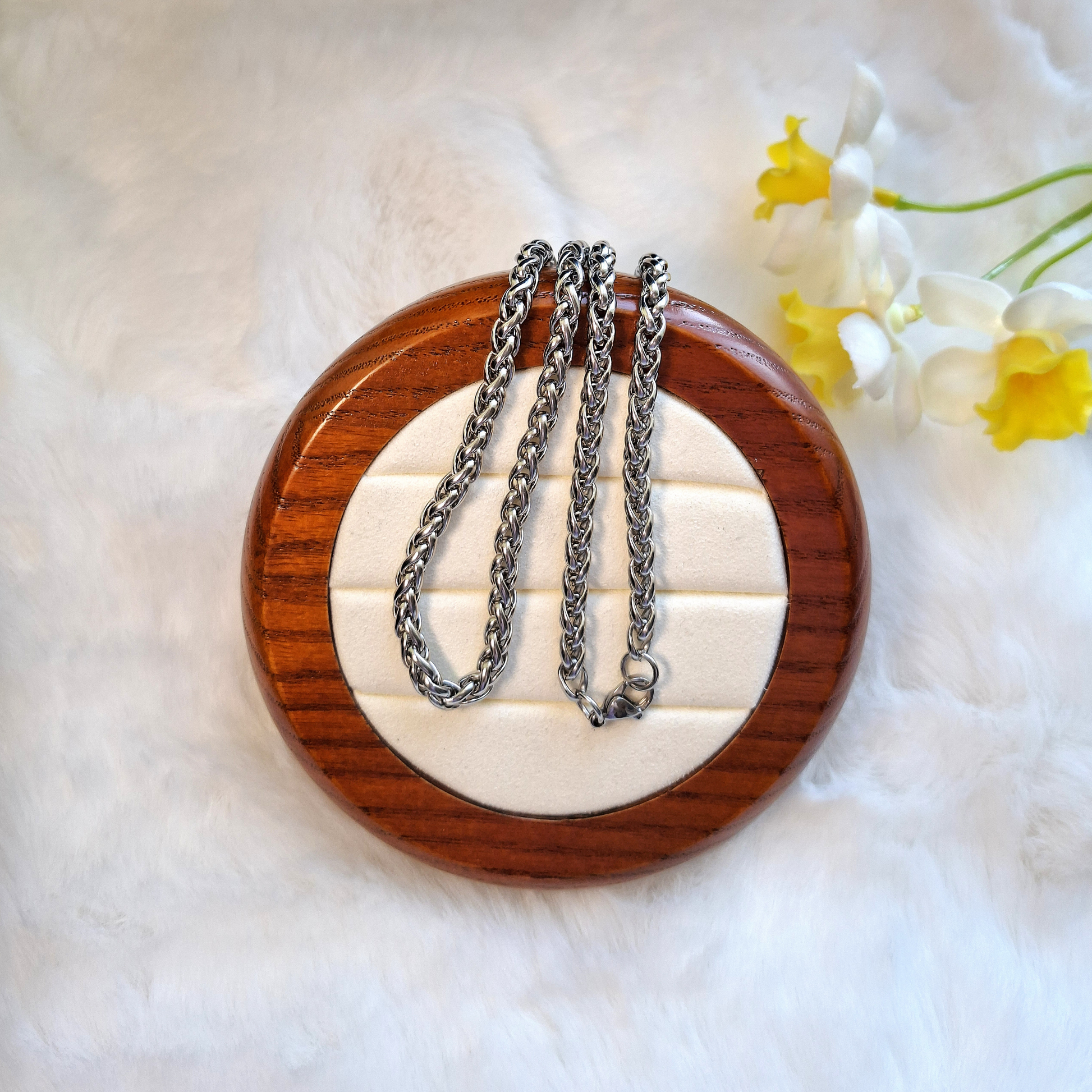 Material: Premium Polished Stainless Steel (Classic with a Durable Finish) Chain Length: Approximately 45cm with a 5mm thickness