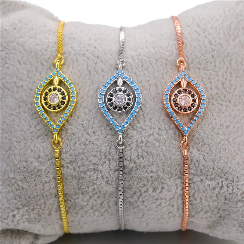 Copper Turkish Evil Eye Bracelet For Woman Micro Pave Zircon Greek Eye Charms Adjustable Chains Bracelet Handmade Jewelry Supplies